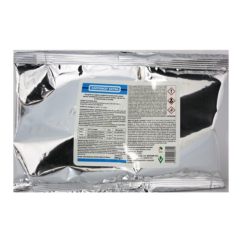 Copforce Extra este un fungicid de ultimă generație, formulat ca granule dispersabile în apă (WG), ce conține două substanțe active cu moduri de acțiune complementare: