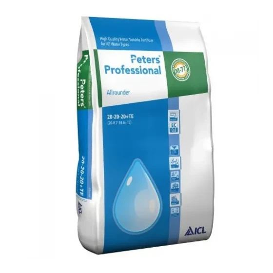 Peters Professional Allround 20-20-20+ME este un îngrășământ hidrosolubil profesional, dezvoltat de ICL Specialty Fertilizers, special conceput pentru fertilizarea completă și echilibrată a plantelor ornamentale, fructiferelor și culturilor în ghiveci sau substrat. Formula NPK 20-20-20 oferă un aport echilibrat de azot, fosfor și potasiu, garantând creștere uniformă, sănătate și performanță ridicată a culturilor.