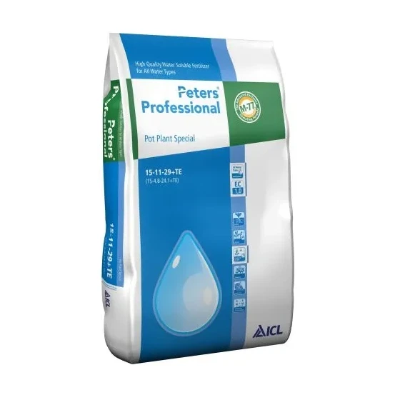 Peters Professional Pot Plant Special 16-11-32+ME este un îngrășământ hidrosolubil profesional, dezvoltat de ICL Specialty Fertilizers, special conceput pentru plante la ghiveci și culturi ornamentale care necesită un aport echilibrat de nutrienți, cu potasiu ridicat pentru plante compacte, rezistente și cu aspect comercial de calitate superioară.